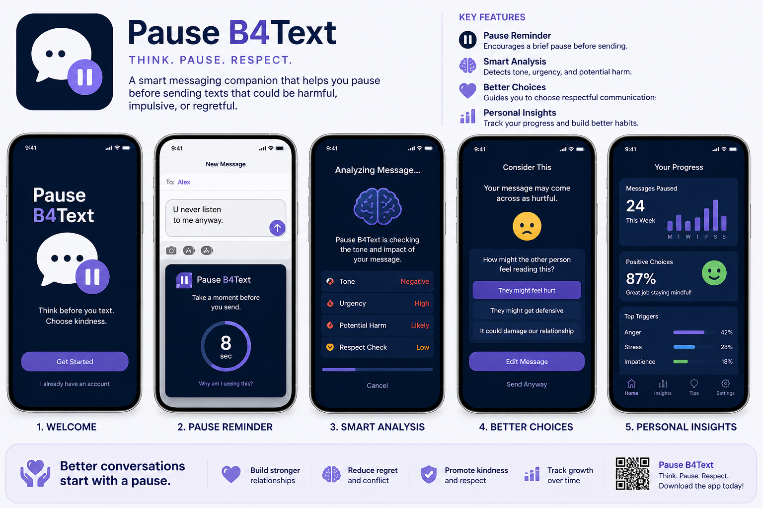 Pause B4Text doesn't tell teens what to feel — it gives them a 60-second buffer between feeling and action.